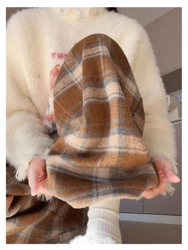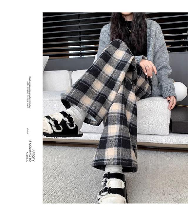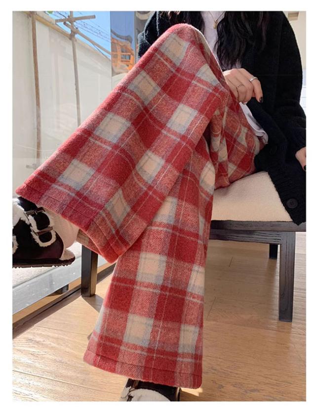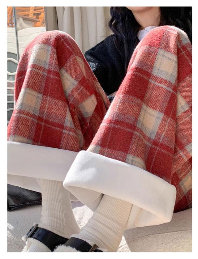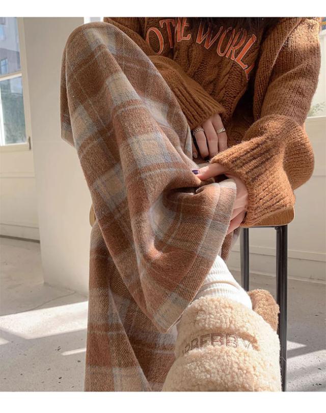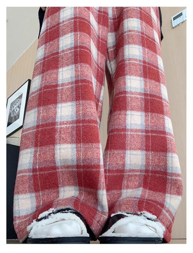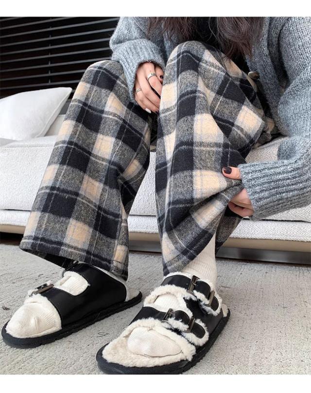 チェック柄ワイドパンツ レディース ストレートパンツ 裏起毛 もこもこ 温か 防寒 チェック柄 ワイドパンツ カジュアルパンツ裏ボアパンツ 裏起毛