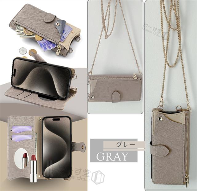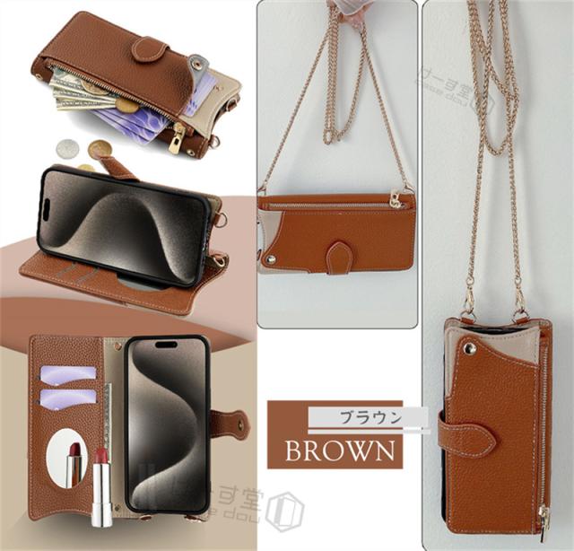 鏡付き AQUOS Sense9 スマホケース ショルダー タイプ アクオス AQUOS Sense9 ケース 手帳型 AQUOS Sense10 ケース ショルダー 横かけ 縦掛け AQUOS Sense10 携帯ケース ショルダー 肩掛け 小銭入れ付き 韓国 ミラー付き かわいい おしゃれ ファスナー
