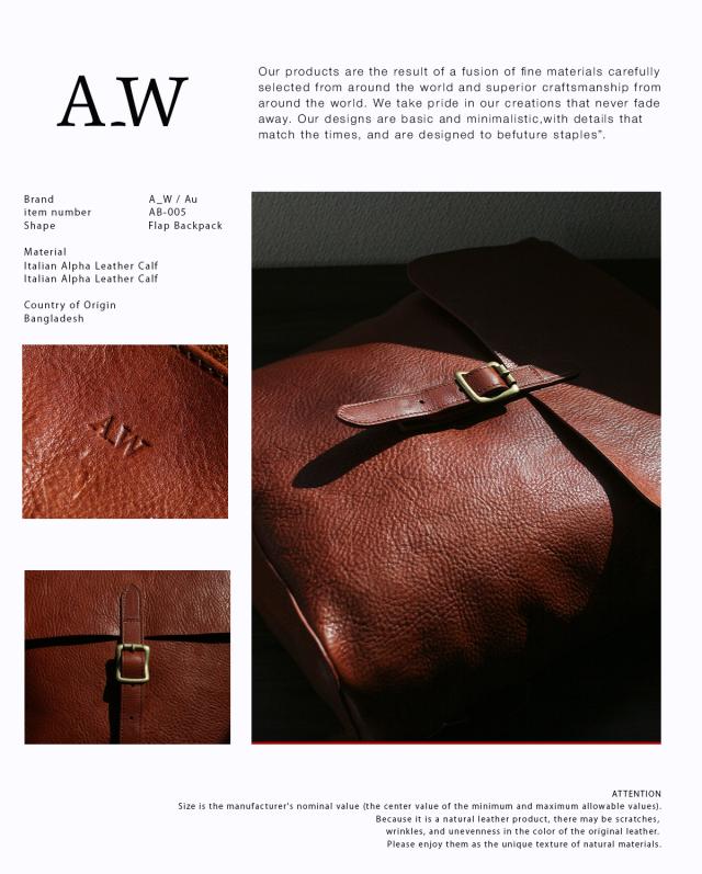 商品レビューで+5%|A_W アウ リュック メンズ レディース ブランド レザー 本革 通勤 通学 黒 A4 フラップバックパック デイパック FLAP BACKPACK AB-005