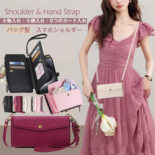 スマホショルダー AQUOS SHG14 ケース AQUOS Sense9 ケース AQUOS Sense10 ケース 手帳型 ファスナー付き スマホポーチ 財布一体型 グーグル AQUOS Sense9 手帳型ケース AQUOS Sense10 SHG15 ショルダーケース カード入れ 肩掛け