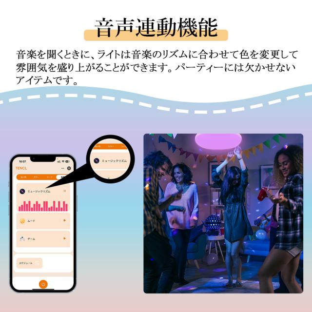 - 音楽を聞くときに、ライトは音楽のリズムに合わせて色を変更して雰囲気を盛り上がることができます。音声連動機能付きこのライトはパーティーやクリスマスなどの日に雰囲気ライトとしてには欠かせないアイテムです。。