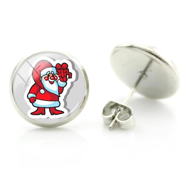 プレゼントを手に持ったサンタクロースをデザインしたカボションをスタッドピアスにセットしたオシャレなファッションピアス。