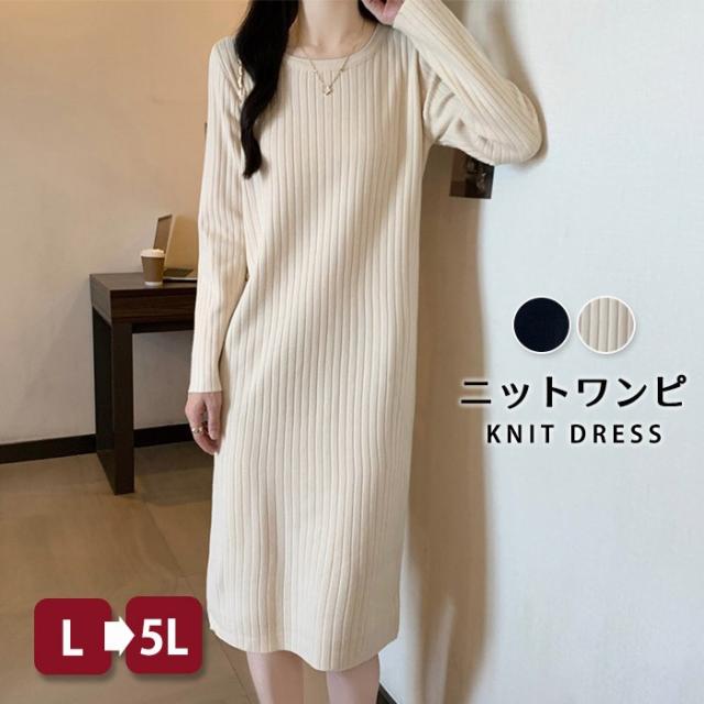 ニットワンピース 秋冬 ロングワンピース インナーニット セーター レディース 秋 冬 春 ロングニット 長袖 ゆったり 肩落ち かわいい カジュアル 体型カバー 大きいサイズ ブラック ベージュ L 2L 3L 4L 5L eh123x1x1x7xq eh123x1