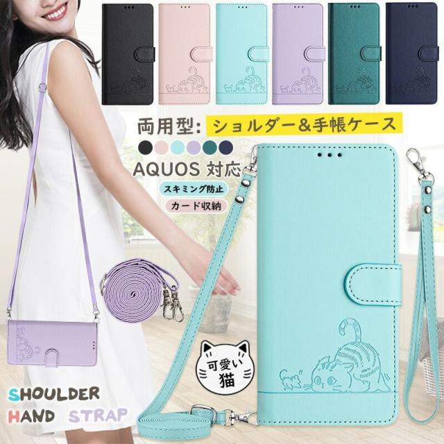 aquos wish4 ケース 可愛い 猫柄 aquos sense9スマホケース 手帳型 aquos sense9 ケース 手帳型 aquos sense10スマホケース 手帳型 可愛い 猫柄 aquos wish5 ケース aquos sense9スマホケース 手帳型 ショルダータイプ aquos sense10 ケース 手帳型 スマホケース aquos wish4 カバー カード収納 RFIDスキミング防止 型押し 猫 おしゃれ ショルダー ストラップ付き