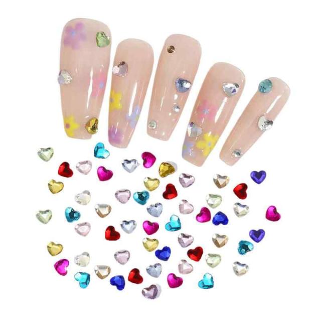 ハート ネイルストーン 約100個セット ネイルパーツ ハートストーン 立体 3mm 小さい ラインストーン キラキラ ガラスストーン クリスタル ジュエリーパーツ ネイルアート デコパーツ (カラフル)