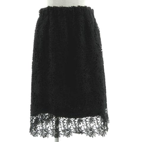 【中古】ヒロココシノ HK WORKS LONDON スカート ストレート 総レース ウエストゴム ミディ丈 ブラック 黒 L