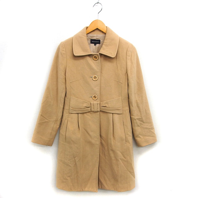【中古】クイーンズコート QUEENS COURT ステンカラー コート アウター ロング ウール カシミヤ混 リボン 2 キャメル