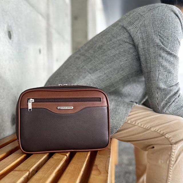 セカンドバッグ クラッチバッグ セカンドポーチ メンズ ストラップ付き YKKファスナー ストラップ付き マチあり 大開き 黒 チョコ CRADLE RIVER