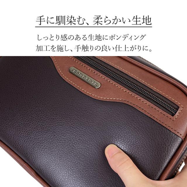 セカンドポーチ クラッチバッグ セカンドバッグ メンズ 結婚式 25cm ストラップ付き マチあり 大開き 黒 チョコ CRADLE RIVER KBN25957 おしゃれ かっこいい 人気 おすすめ かばん 20代 30代 40代 50代 60代 70代 父の日 母の日 敬老の日 誕生日 クリスマス ギフト プレゼント 贈り物