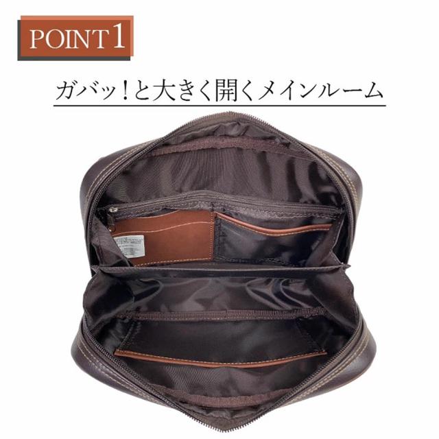 ◆ 開口部が大きく開いて出し入れしやすいセカンドバッグ。