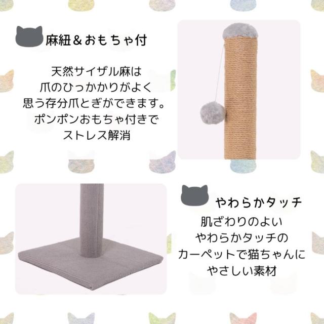 爪とぎ 猫 キャットタワー 爪研ぎポール 爪とぎタワー ミニ スクラッチポスト つめとぎタワー ねこ 天然 麻 タワー ネコ ポール 爪研ぎ 丈夫 猫用爪とぎ グレー