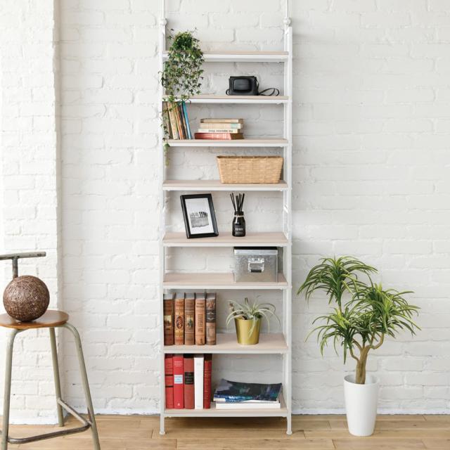 山善 フリーラック (突っ張り) 幅60.5×奥行25.5×200-260cm 壁面収納 棚板の高さが変えられる 組立品 アンティークアイボリー/サンド
