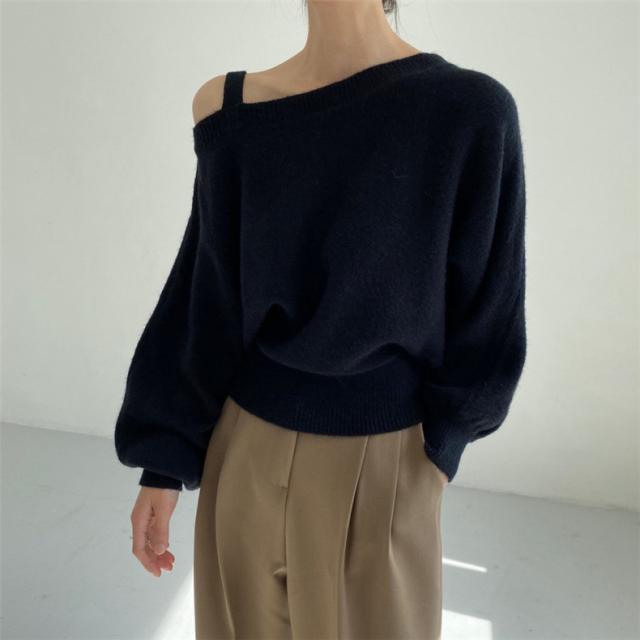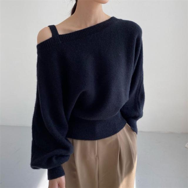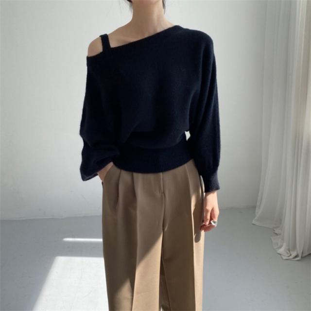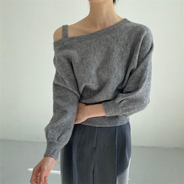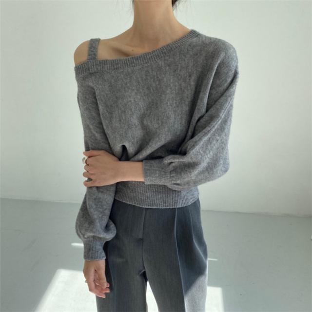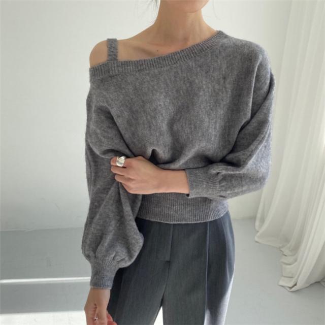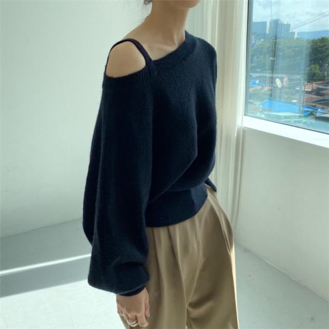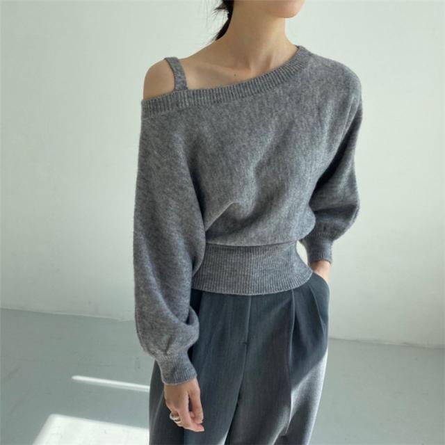 肩だしニット レディース コットン 秋トップス ボリューム袖 不規則 プルオーバー 季節感たっぷり カジュアルに女性らしく きれいめ大人っぽコーデに