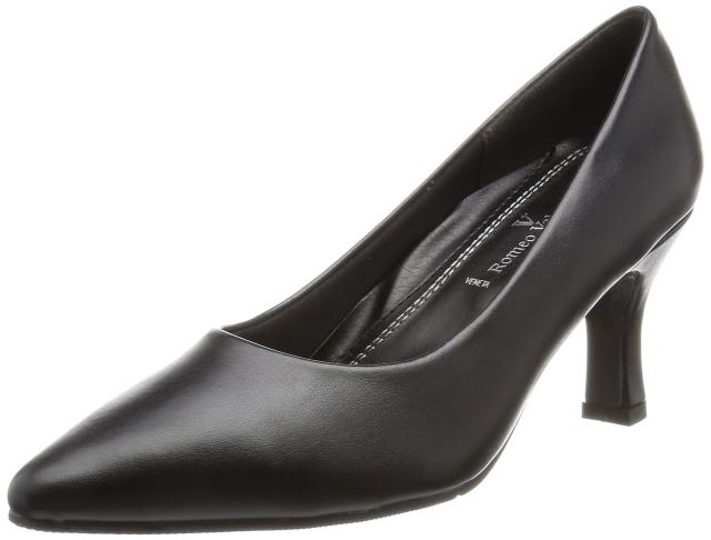 ロメオ バレンチノ ポインテッドトゥ ヒール7cm 足囲3E PUレザー VB2306 レディース ブラック 23.0 cm 3E