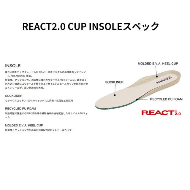 快適な履き心地を実現するために、インソールには高機能カップインソール「REACT2.0」を採用し、