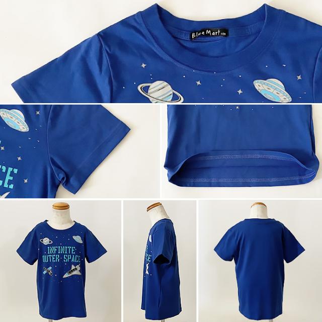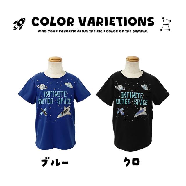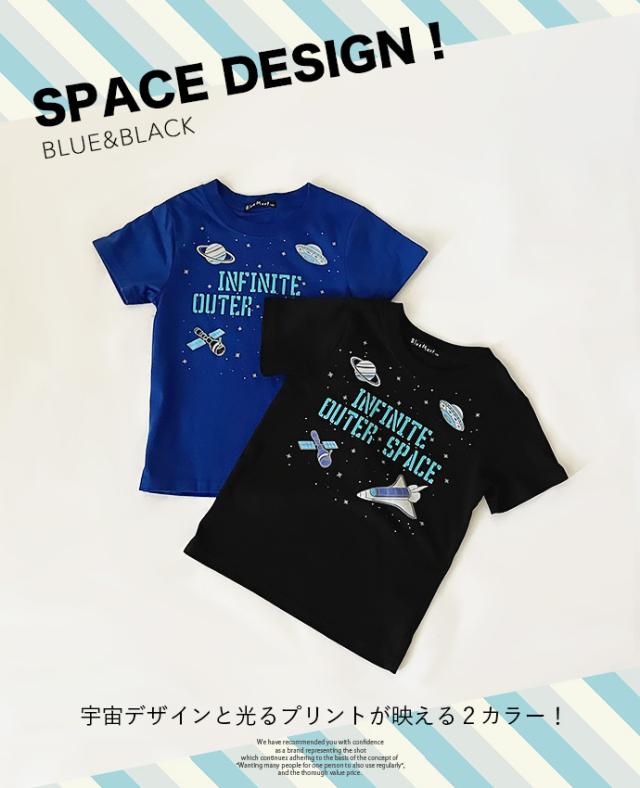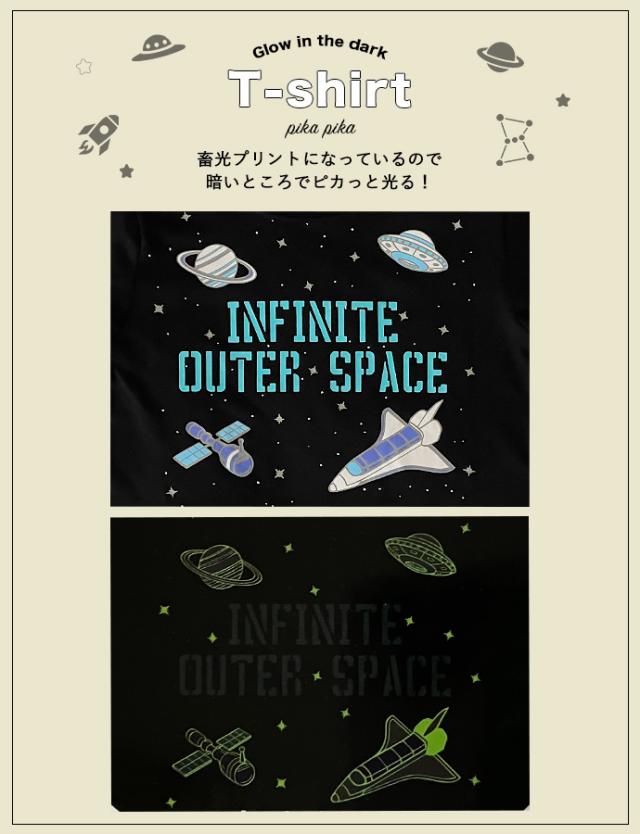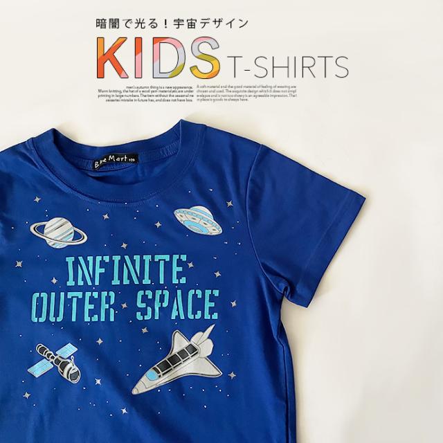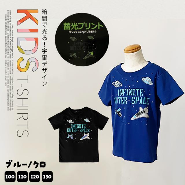 子供服 Tシャツ プリントTシャツ 半袖 トップス 光る 畜光 プリント キッズ 夏服 カットソー ジュニア 宇宙 男の子 女の子 保育園 幼稚園