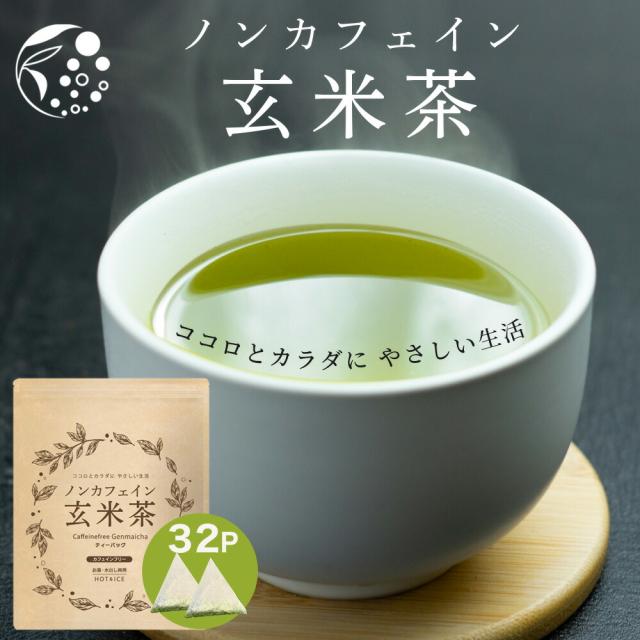 ノンカフェイン 玄米茶 ティーバッグ 4g×32個 お茶 国産 送料無料 静岡茶 ノンカフェイン緑茶使用 植物性由来ティーバッグ 水出し 冷茶 冷やし茶 日本茶 リーフ 工場 直販 産地直送 カテキン 静岡 メール便 牧之原 カフェインフリー カフェインレス