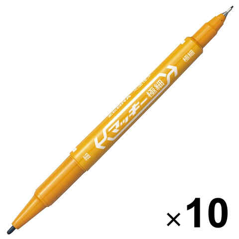 ストア内の商品は全品送料無料です。油性マーカーの定番品、マッキー。速乾性・耐水性。1本で細・極細両用。紙・布・木・段ボール・ガラス・プラスチック・金属・ビニール類など幅広くご利用になれます。(浮輪等の軟質塩化ビニール製品には適しません。)【入 数】10本【サイズ】φ11.9×141.8mm【重 量】8.5g【線 幅】細1.0〜1.3mm/極細0.5mm【インク】油性染料(アルコール系)【インク色】ライトブラウン■メーカー: ゼブラ