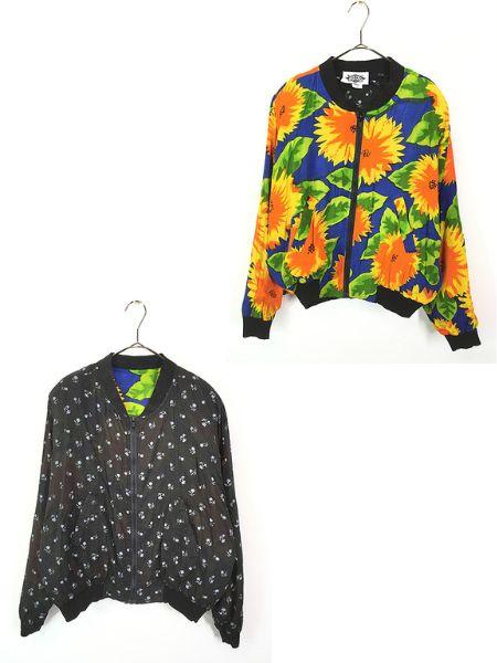 レディース 古着 90s RIDE 光沢 花 フラワー 総柄 レーヨン×コットン リバーシブル ジャケット ブルゾン L 古着