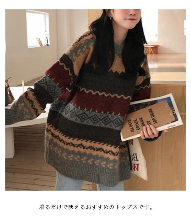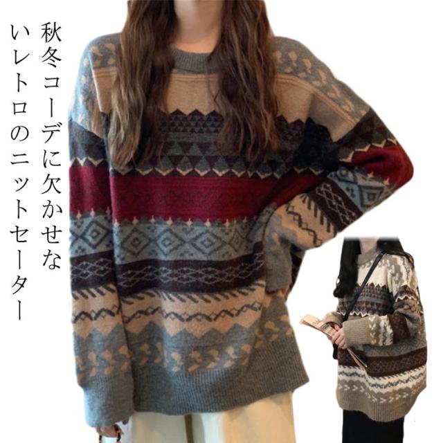 ノルディック柄 プルオーバーセーター 秋冬 ニット 長袖 レディース クルーネック プルオーバー あったか おしゃれ 重ね着 トップス プルオーバー 可愛い フリーサイズ 体型カバー 20代 30代 厚手 秋冬 ニットセーター 暖かい クリスマス ギフト プレゼント