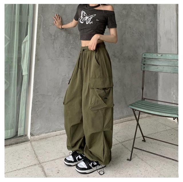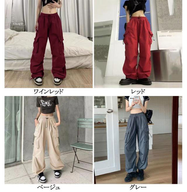 ヒップホップ ゆったり かっこいい 長ズボン 赤 ダンス グレー ストリート レディース かっこいい ダボ カジュアル サイドポケット カーキ 黒 大きいサイズ ピンク カーゴパンツ ワイドパンツ