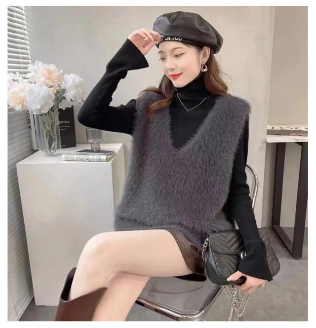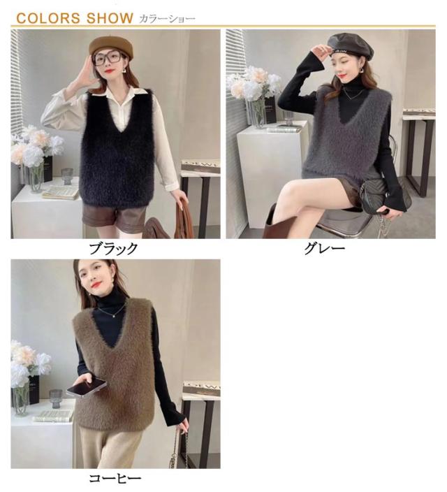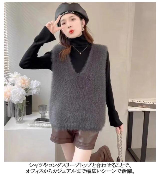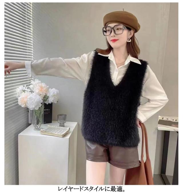 モヘア ふんわり ニットベスト レイヤード ジレ ニットベスト 秋冬 シャギー レディース ニット Vネック シャギーニット ニットベスト ベスト トレンド トップス おしゃれ 毛足長め プルオーバー セーター ノースリーブ シャギーニットベスト きれいめ 可愛い 春 秋