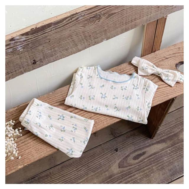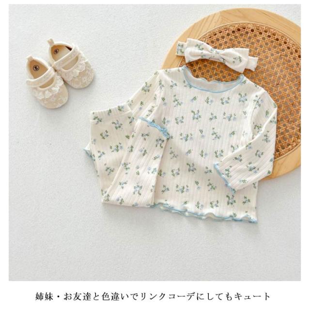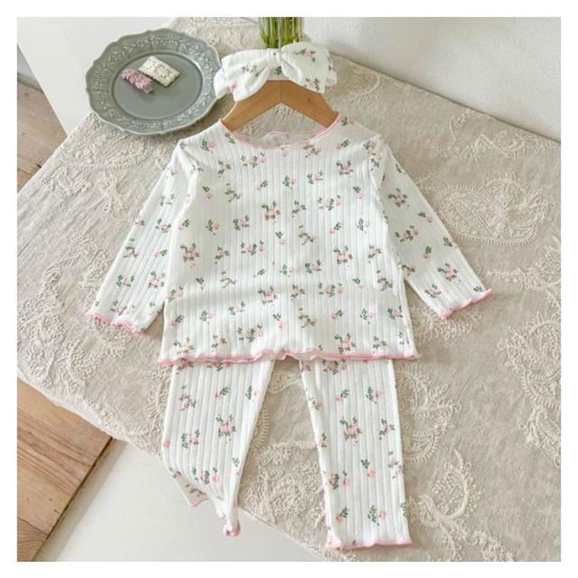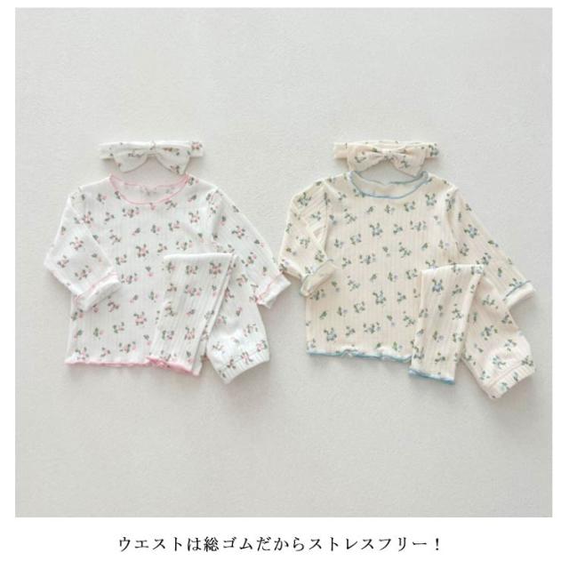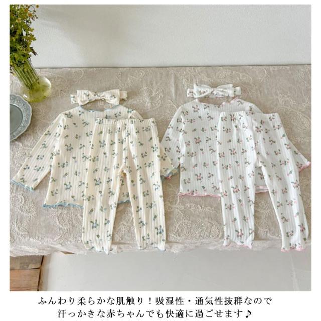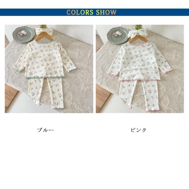 ベビーパジャマ 3点セット 綿 キッズ 長袖 上下セット ヘアバンド ルームウェア 66 73 80 90 100cm 女の子 パジャマ 子ども 子供服 長袖パジャマ 部屋着 寝巻き キッズパジャマ コットン 赤ちゃん かわいい 春秋冬 花柄 天然素材