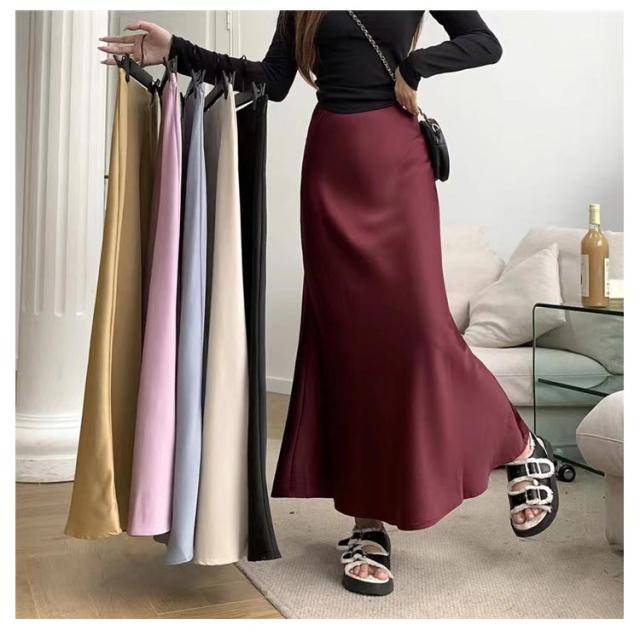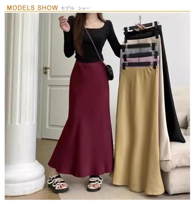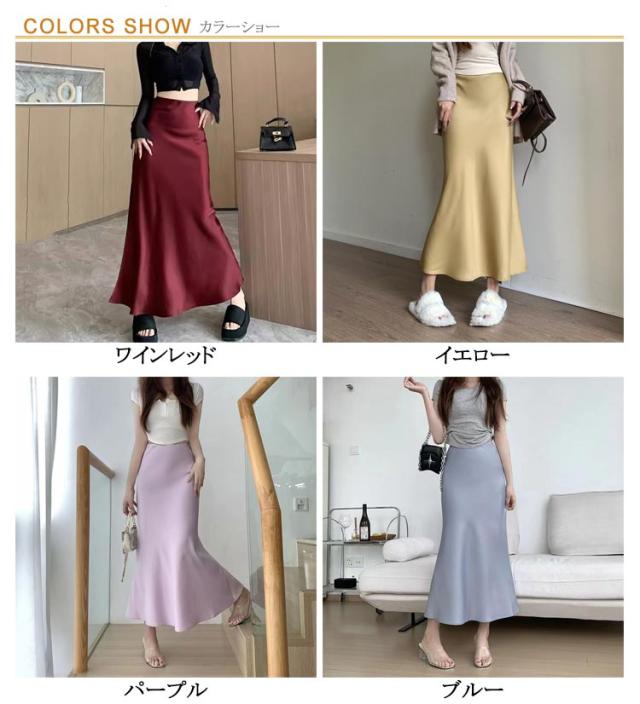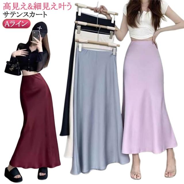 レディース スカート 夏 スカート サテン サテンスカート 春夏 春 Aライン サテンスカート ミディアム フレアスカート シンプル サテンスカート 女性 無地 ミモレ丈 ミディアム丈 ミモレ ロングスカート 膝下 ひざ下 すべすべ 滑らか きれいめ 綺麗め