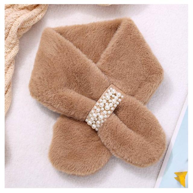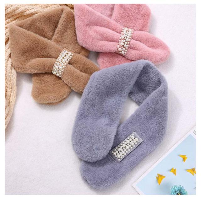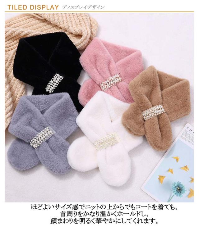 エレガント パーティー パールビジュー付きフェイクファーティペット ファーマフラー モード 連パール ファーマフラー 高見え フォーマル カジュアル シンプル おしゃれ防寒 女の子 ティペット ファーティペット フェイクファー