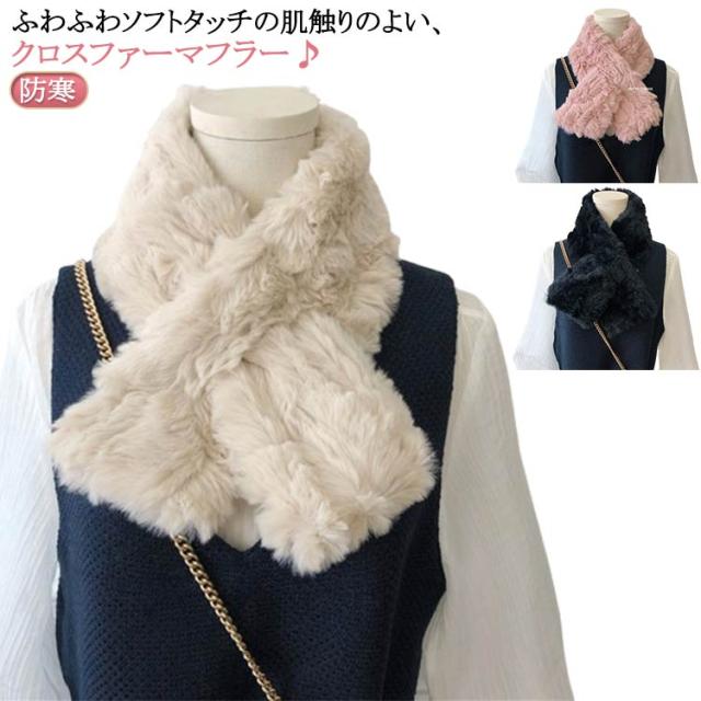 | ふわふわソフトタッチの肌触りのよい、クロスファー マフラー♪ コンパクトサイズで可愛く目立つデザインがおススメです♪ ふわふわのボリューム感で、肌触りのよい | |