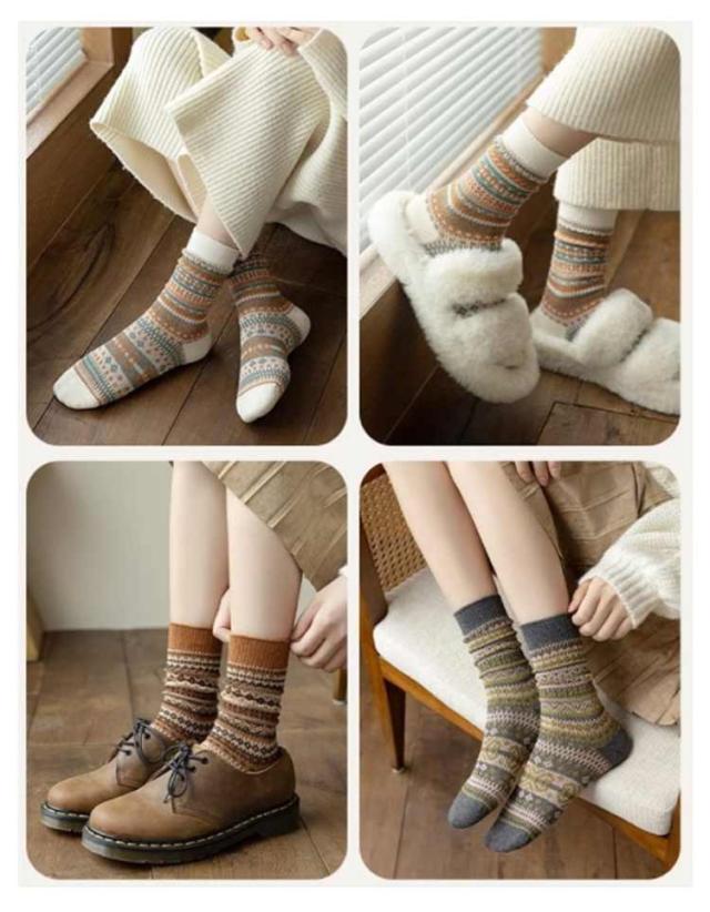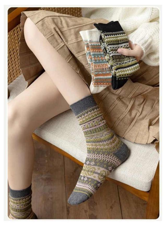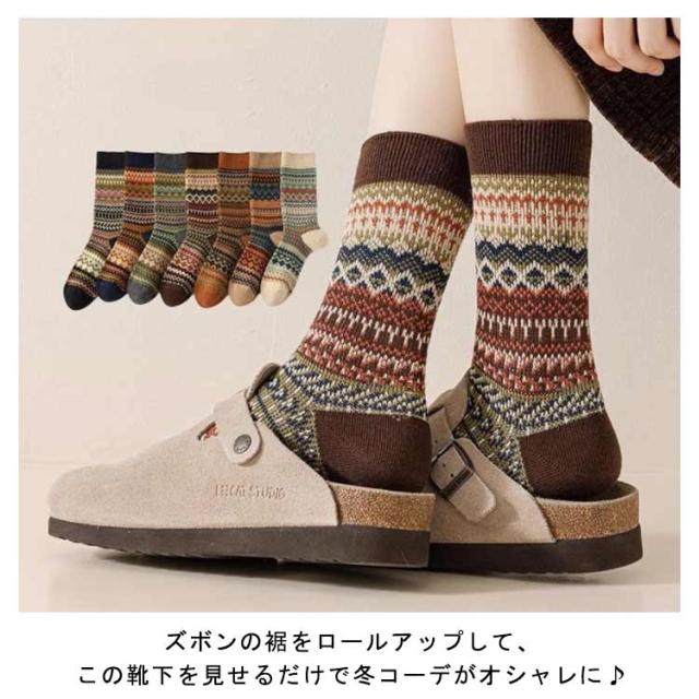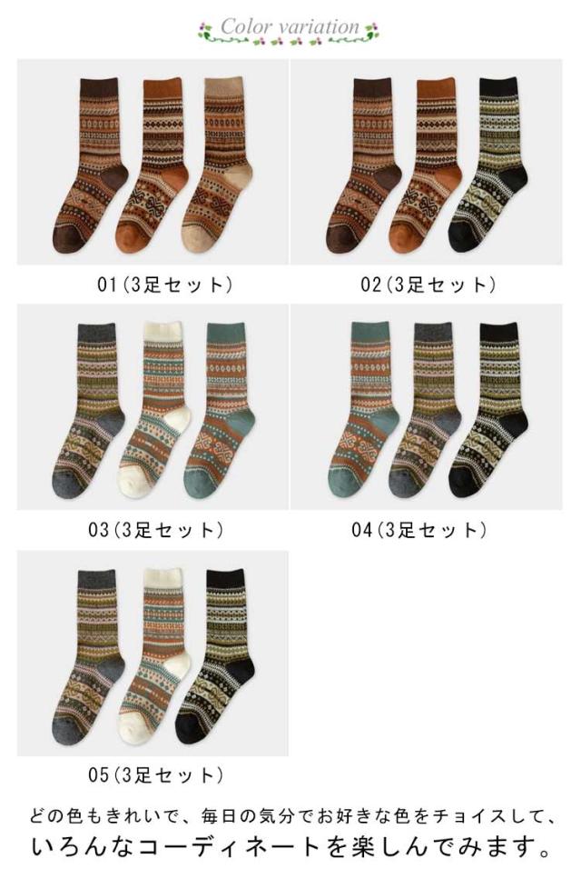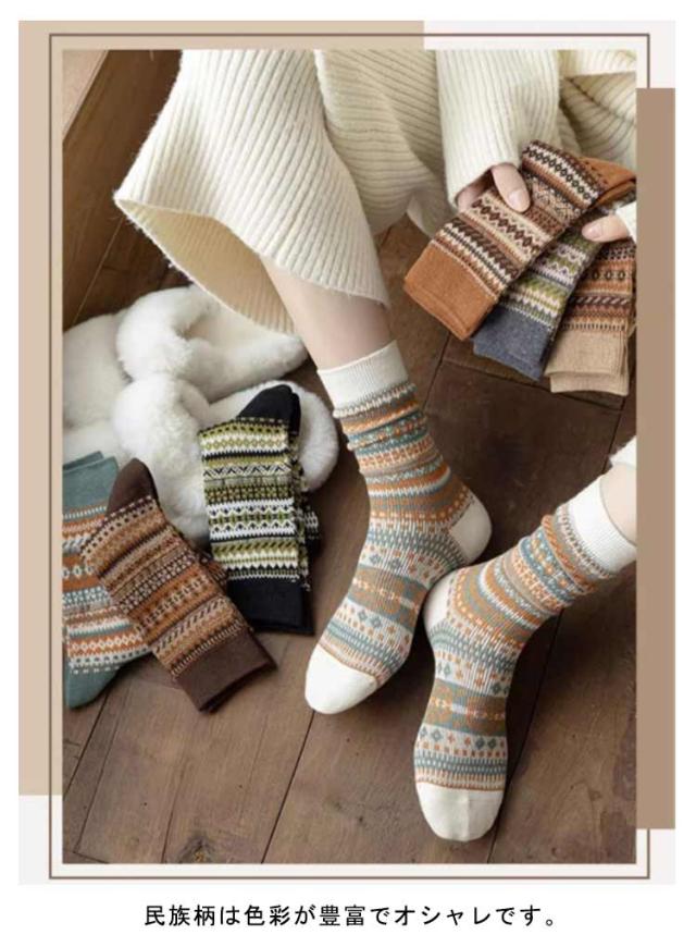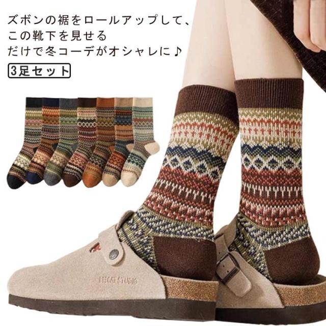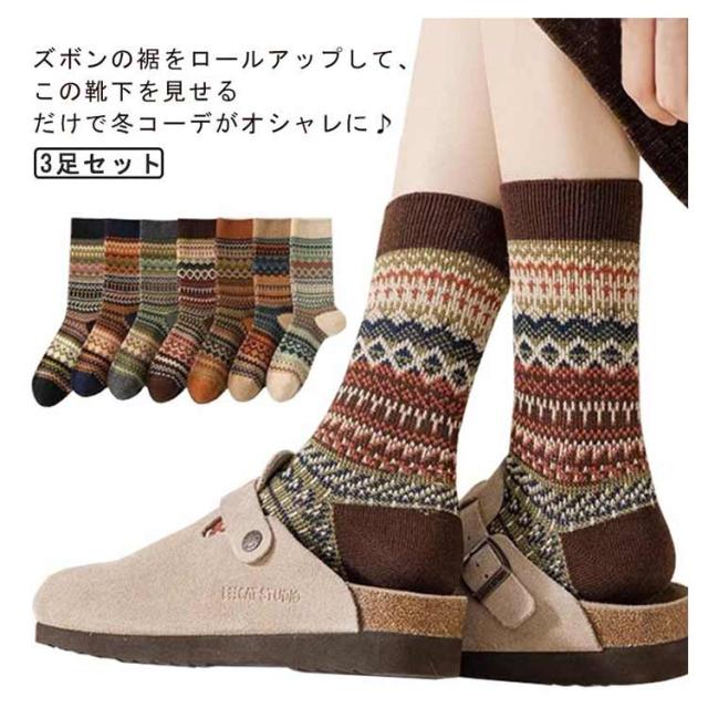 3足セット 靴下 暖かい ソックス レディース 春秋冬 防寒 民族柄 中厚手 春 靴下 ルームソックス アウトドア 可愛い くつした 婦人 室内 保温くつ下 カジュアル ビジネス おしゃれ プレゼント