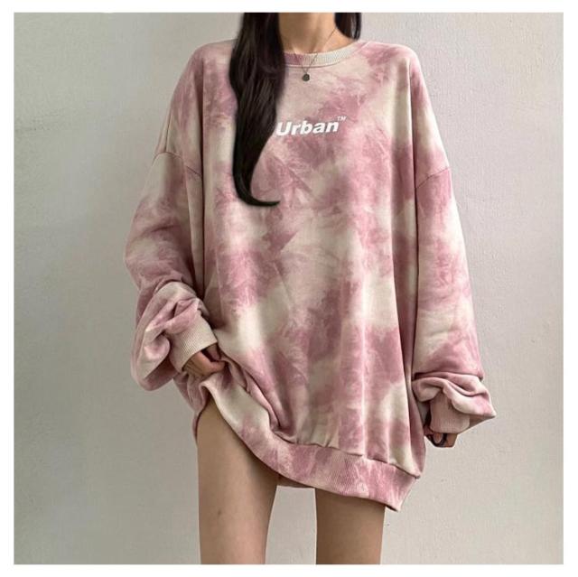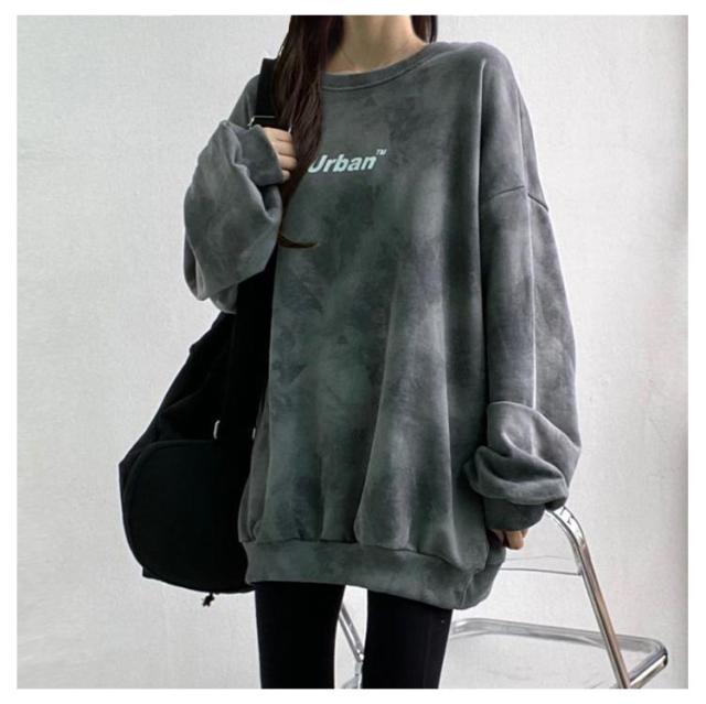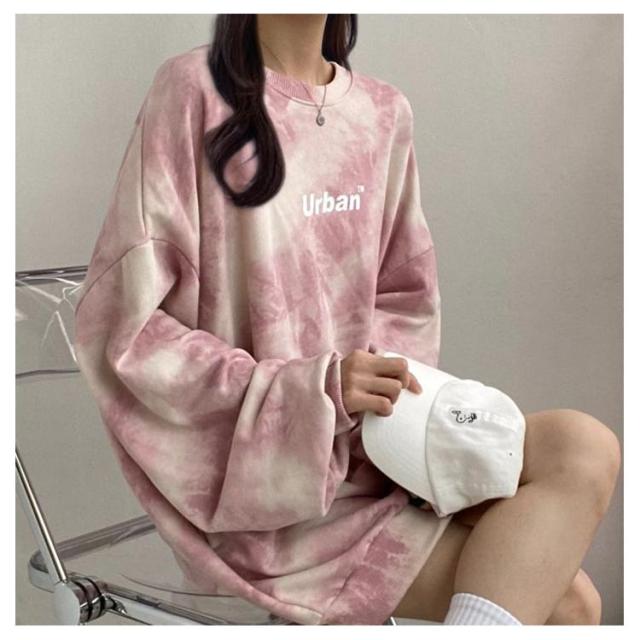スウェットトレーディース 韓国ファッション トップス プルオーバー キレイめ トレーナー レディース スウェット タイダイ柄 長袖 オーバーサイズ ビッグシルエット 送料無料 体系カバー スウェットトレーディース 春 秋