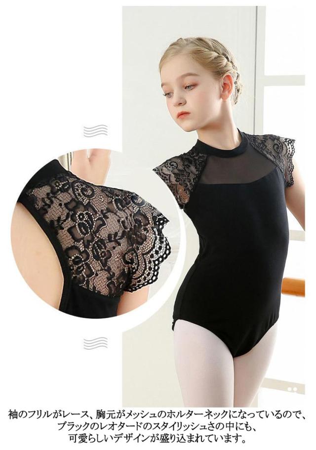 通気性抜群 ダンス服 体操着 バレエ練習着 ジュニア用 黒 キッズ レース柄 練習用 子供 バレエ 140 ブラック 子ども 130 スカートなし バレエウェア バレエレオタード ジュニア 黒 120 180 150 フリル 160 170 バレエレオタード