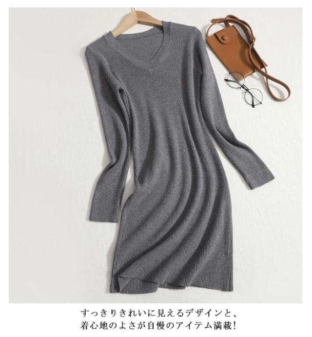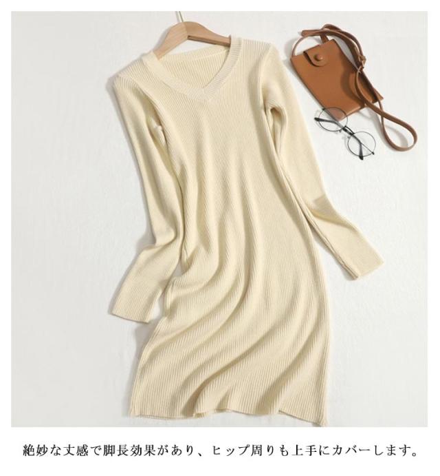 ニットワンピース Vネック オシャレ ニットワンピース 膝丈 秋冬 ニットワンピース 無地ストレートスカート ニットインナー セーター ゆったり 韓国風 大人 上品 30代 40代 長袖 無地 体型カバー オシャレ チュニック カットソー 20代 S M L XL 送料無料