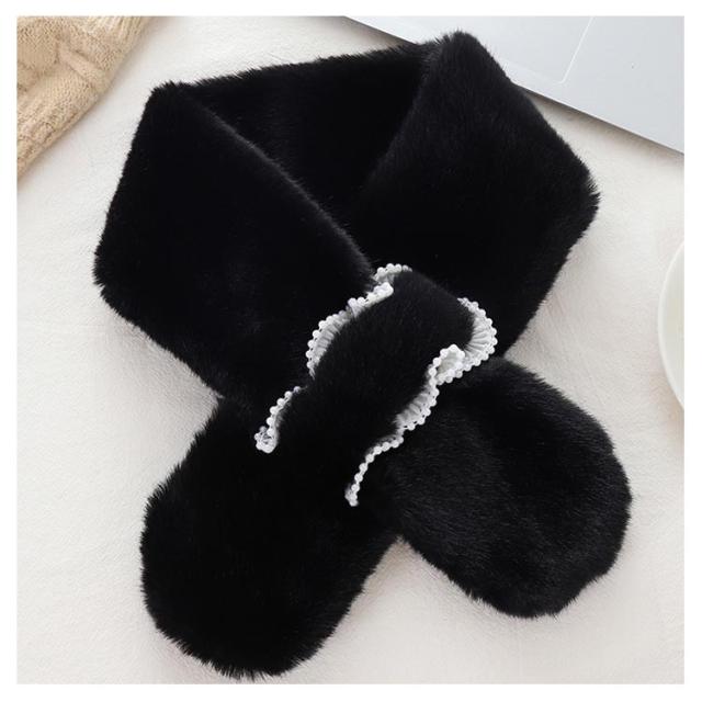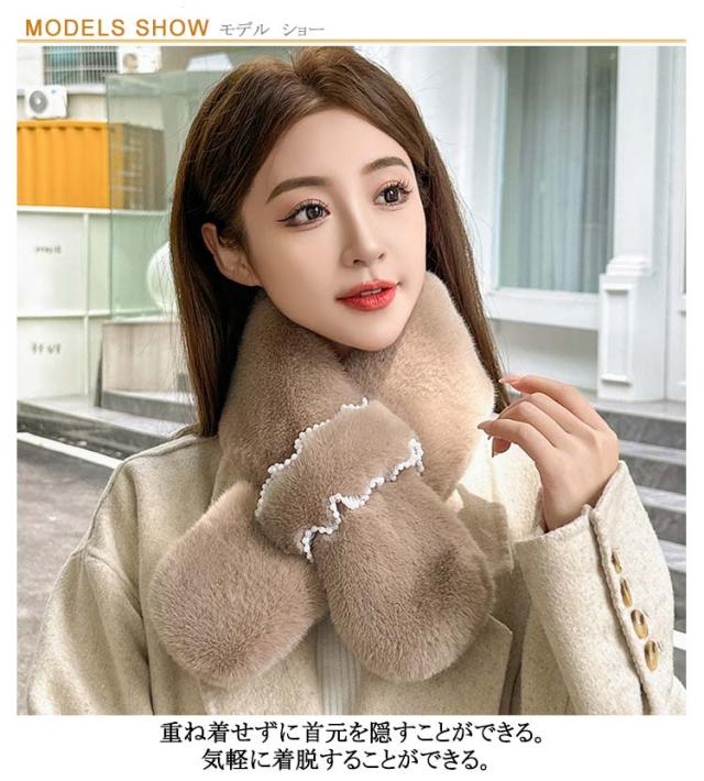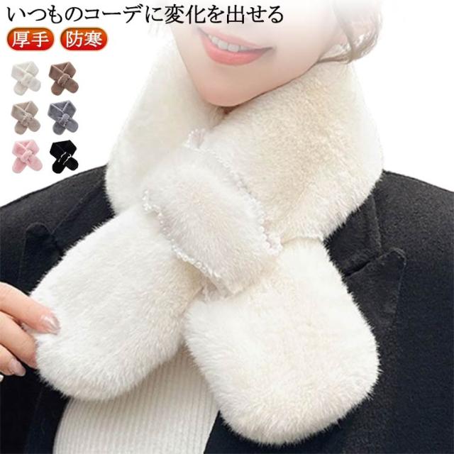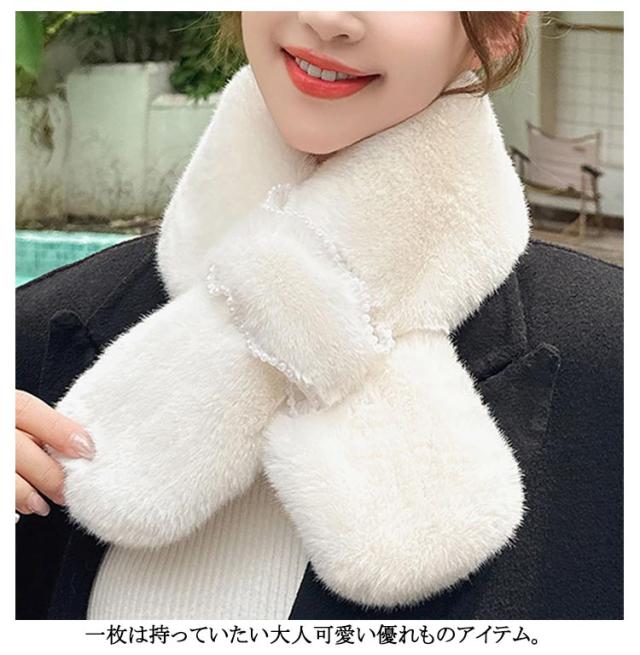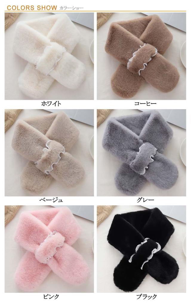 ティペット エコファー ファーマフラー 白 ビジュー きれいめ 黒 パール 防寒 おしゃれ フェイクファー レディース ファー マフラー ネックウォーマー ストール 暖かい ネックカバー 付け襟 つけ襟 ファーマフラー フォックス ファーマフラー レディース