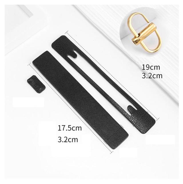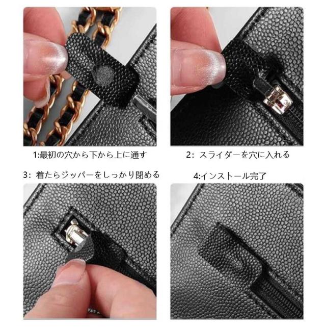 | サイズについての説明 | 4点セット:チェーン擦れ防止プロテクター1個(3.6*1.2cm)+型崩れ防止チャックカバー1個(19*3.2cm)+型崩れ防止底板1個(17.5*3.2cm)+ バックル1個 ※実寸はメジャー採寸の為、若干の誤差が生じる場合があります。 |