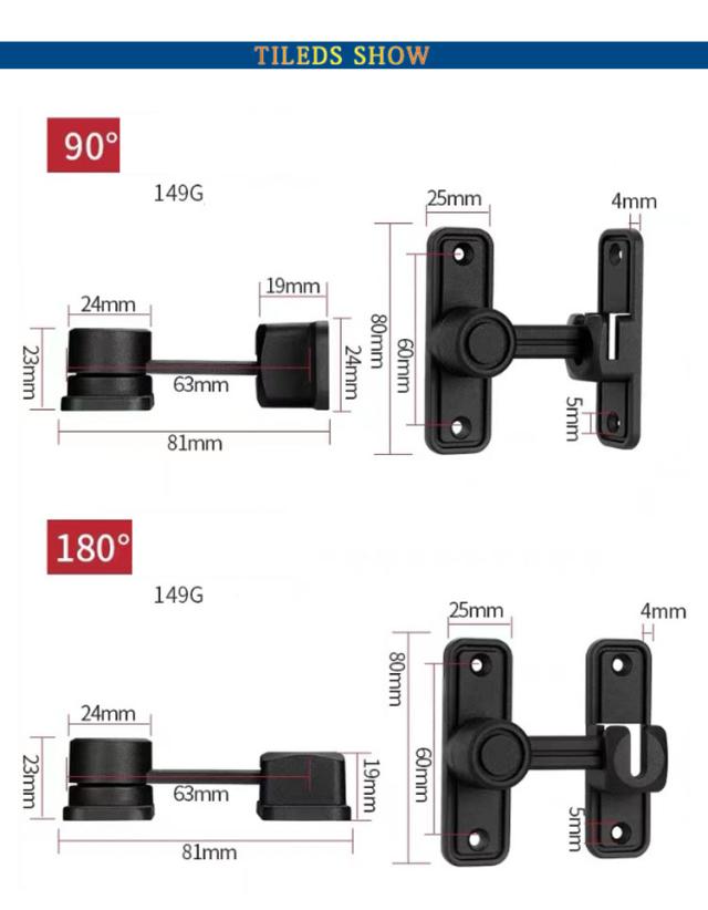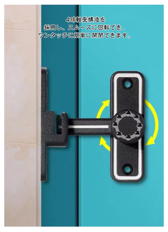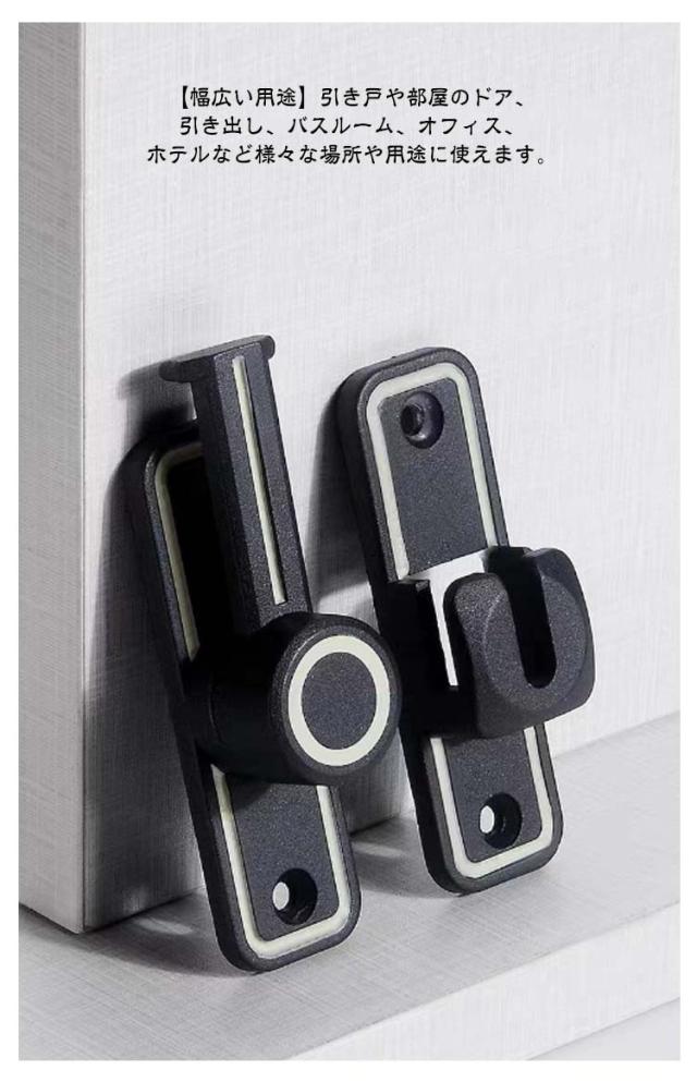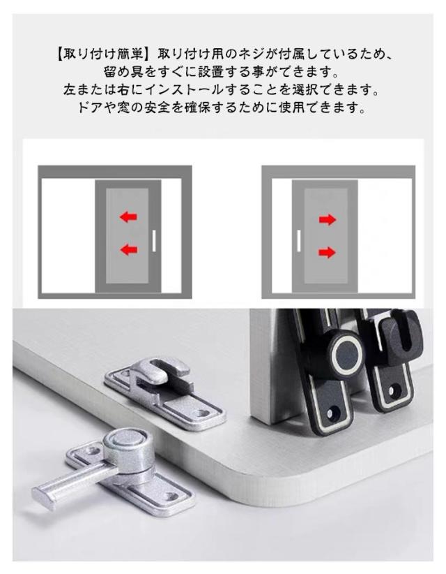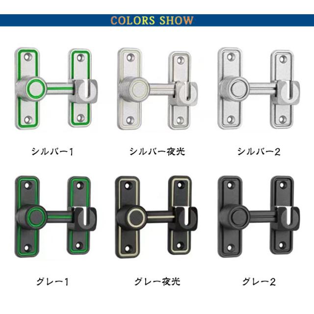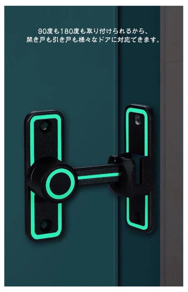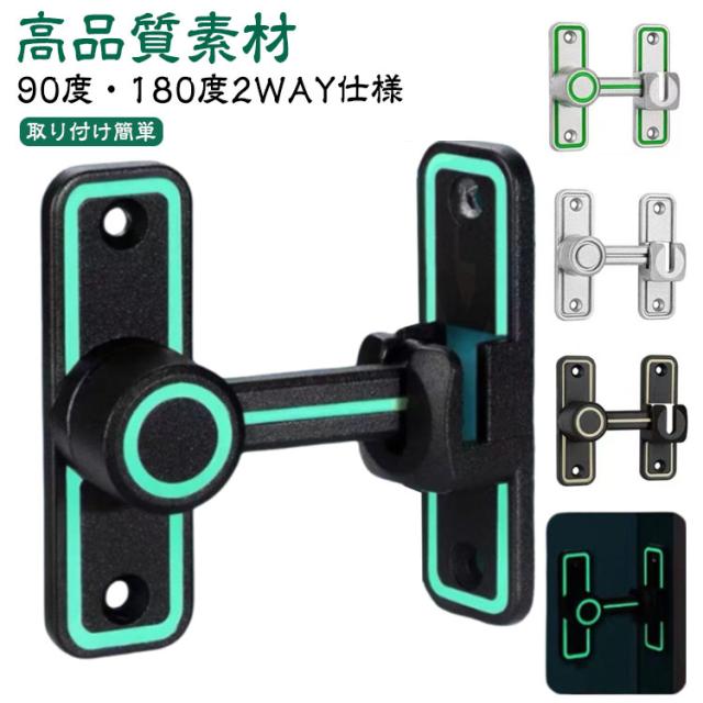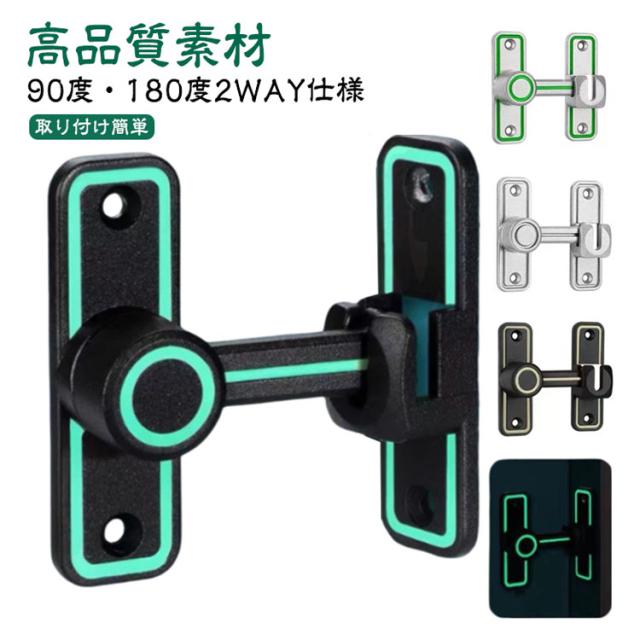 ドアロック 後付け 引き戸 鍵 90度/180度 兼用 穴あけ不要 取り付け簡単 ドアバックル 亜鉛合金 ドア留め金ロック 回転式 フリップラッチロック 夜光 スライディングドア 防犯 部屋 窓 玄関用 引き戸 鍵 ロック 後付け