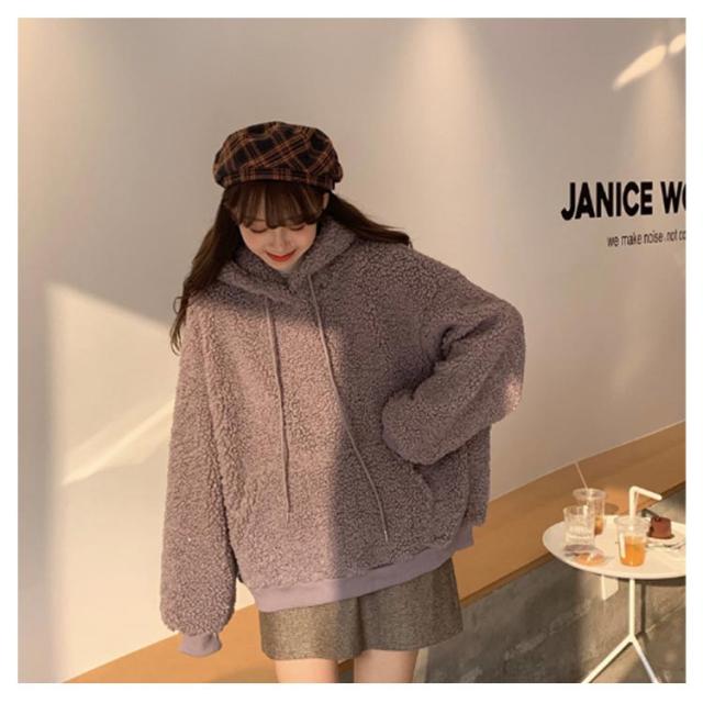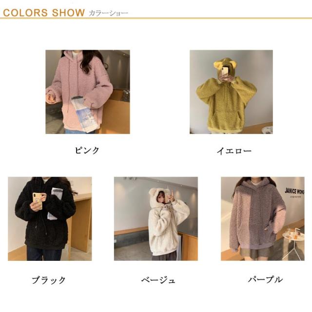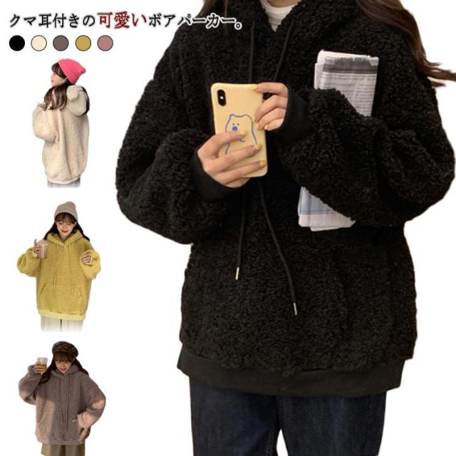 クマ耳 プルオーバー ボアパーカー フード付き ジュニア シープボア調 女の子 ボア レディース トップス パーカー ボアブルゾン 10代 20代 あったか ドロップショルダー 可愛い オーバーサイズ 防寒 秋冬 ルームウェア 部屋着