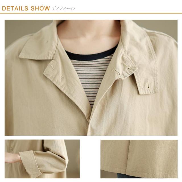 レディース トレンチコート 秋コート アウター スタンドカラー スプリングコート 薄手 オーバーサイズ 羽織り ウィンドーブレーカー ビッグサイズ ロング丈 ブルゾン ジャケット オーバーサイズ 体型カバー ゆる