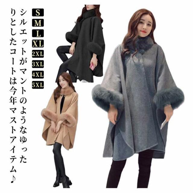ポンチョコート レディース コート アウター マントコート ファーコート ファー付き トレンチコート チェスターコート ケープコート ポンチョ ケープ マント 防寒 羽織り エレガント フェミニン 上品 高見え 春秋冬 長袖