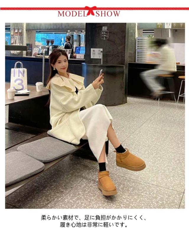 | ムートンブーツ 厚底 柔らかい素材で、足に負担がかかりにくく、履き心地は非常に軽いです。内側のボアがついており、ふわふわで防寒性に優れます。 雪の日でも、濡れた路面や滑りやすいタイルの上など、安定に歩きます。 内部にはふわふわな裏起毛を採用して、肌触りの良い暖かさで足を包み込み、つま先まで暖かさが広がります。 | |