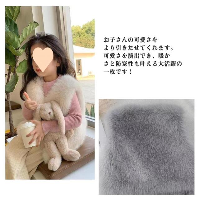 コート フェイクファー ジレ ふわふわ 秋 ファーベスト キッズ ノースリーブ 女の子 羽織り アウター 保温 子供服 フェイクファー トップス 120 もこもこ あったか 防寒 細身 冬 ベビー服 キッズベスト かわいい 通学 通園 80 90 100 110 130 140 150