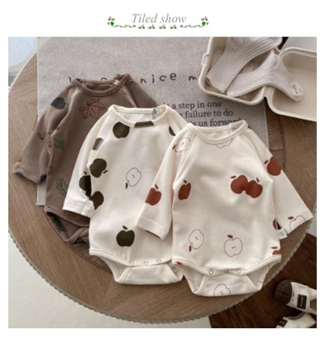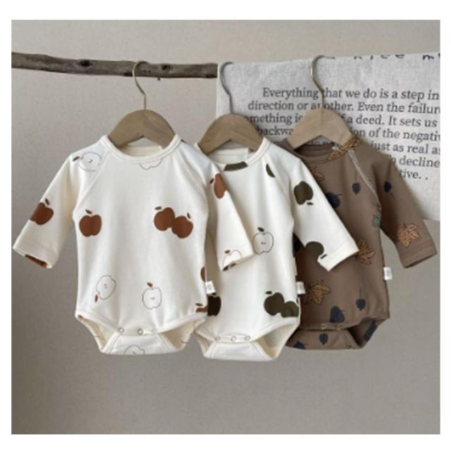 ロンパース 赤ちゃん 肌着 長袖 ベビー服 カバーオール 新生児 綿 コットン 暖かい 男の子 女の子 レトロ 春 秋 冬 子供服 クルーネック ボディスーツ パジャマ ルームウエア 肌着