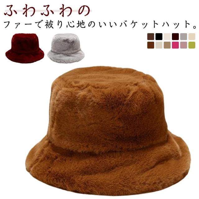 防寒 ボア 肌触り良い 帽子 厚手 ハット ふわふわ ボア ファー 防寒対策 ふわふわ 小顔効果 ファー ハット バケットハット 暖かい バケハ バケットハット 送料無料 12色展開 つば広 フェルト ハット エコファー 折りたたみ uv