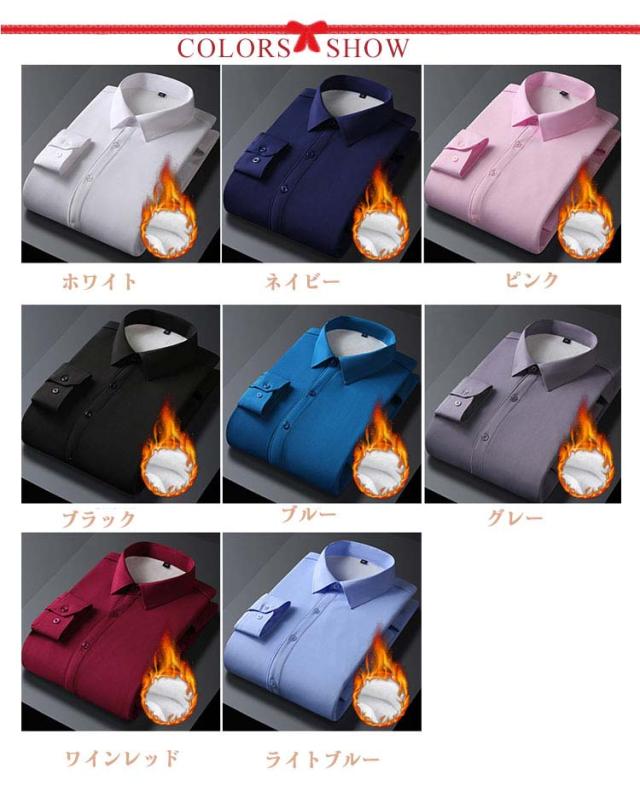 | M-5XL!8色展開!おしゃれな暖かい裏起毛ワイシャツです。 裏起毛なので寒い日も一枚で着こなせる温かさ! 形態安定で、お手入れ簡単! ニットトップスなしで、ジャケットを羽織っただけで、真冬でも。 ビジネスシーンからフォーマルシーンまで様々なシーンに大活躍する。 大きいサイズまで取り揃え、どんなに方でも着用できるのも嬉しいポイント。 | |