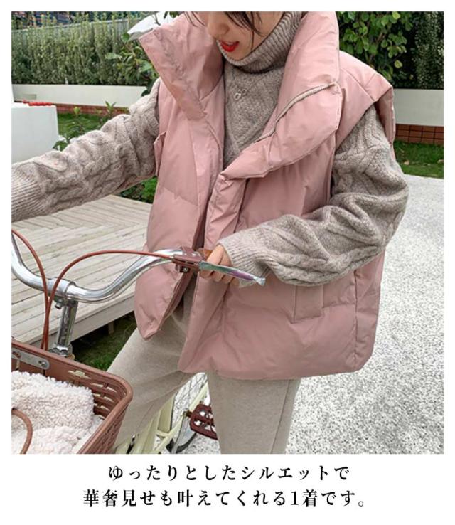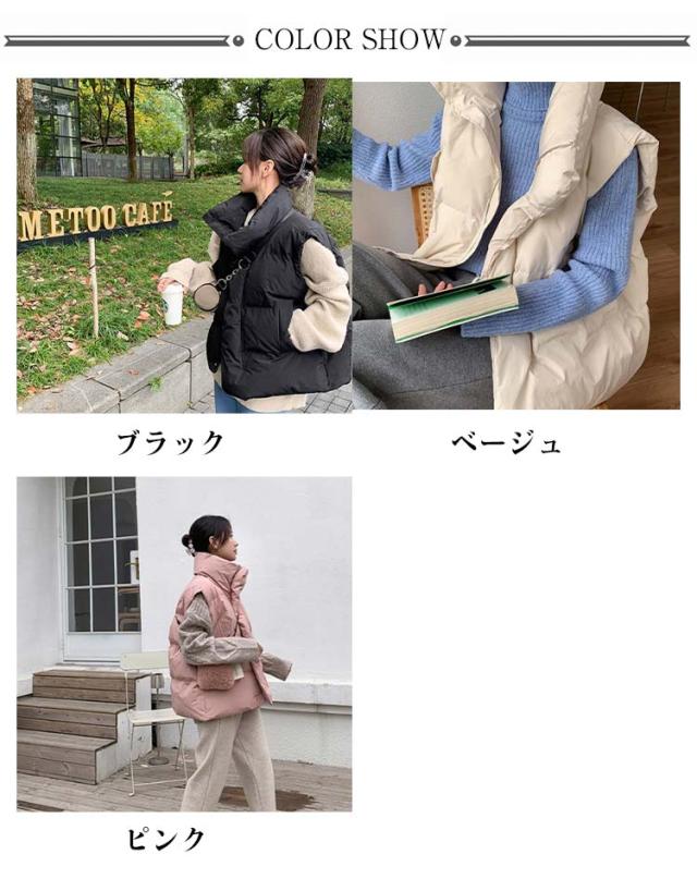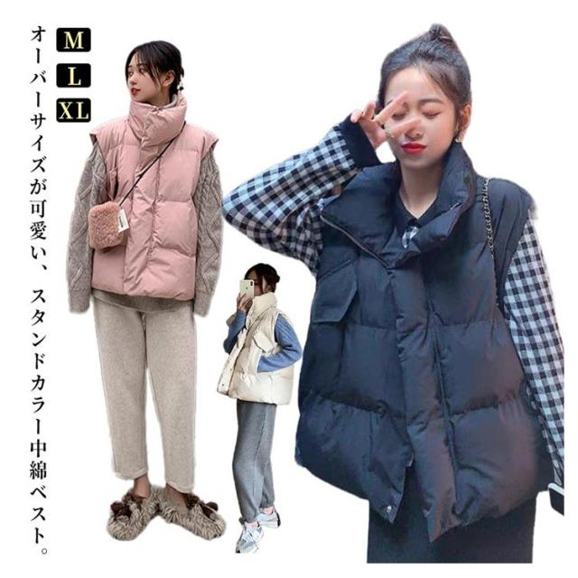 レディース オーバーサイズ アウター 中綿ベスト 中綿ベスト 冬 ジャケット 中綿 秋 スタンドカラー フェイクダウンベスト 韓国風 春 防寒 無地 おしゃれ カジュアル スポーティー ポケット 通勤 通学