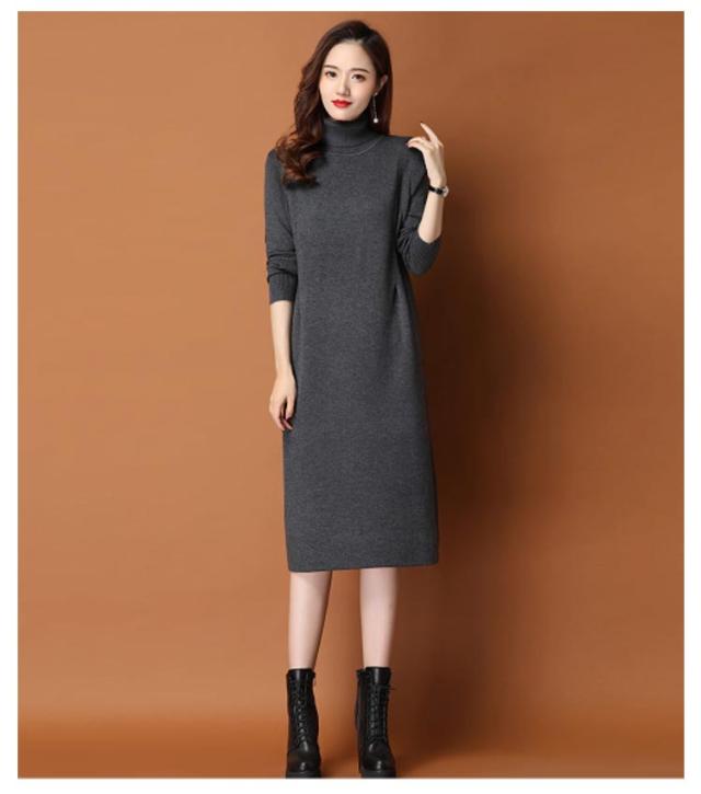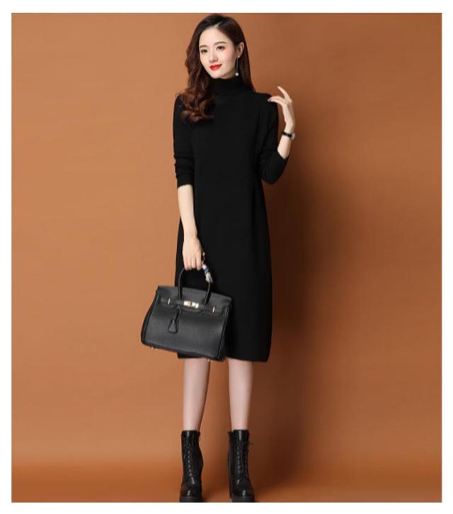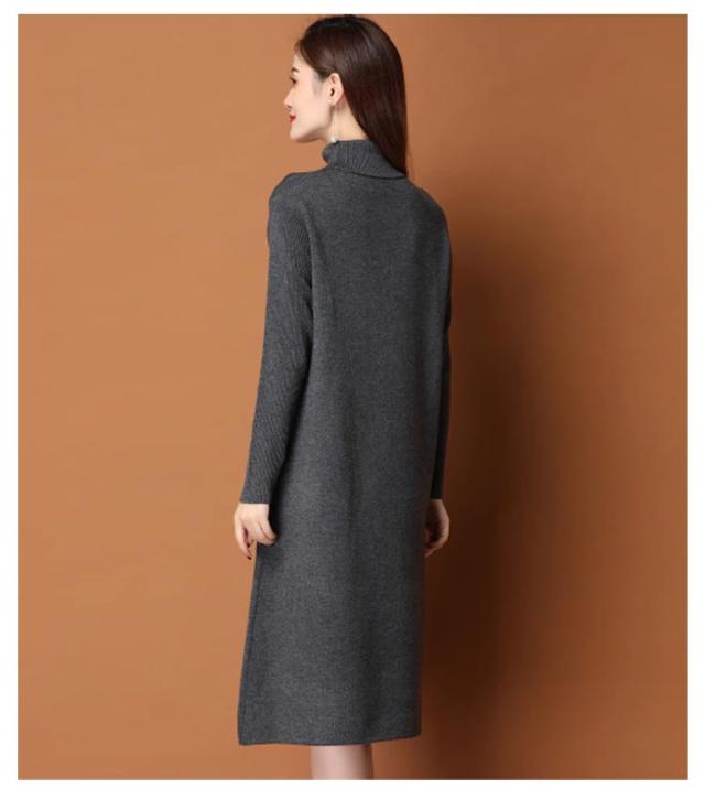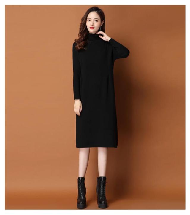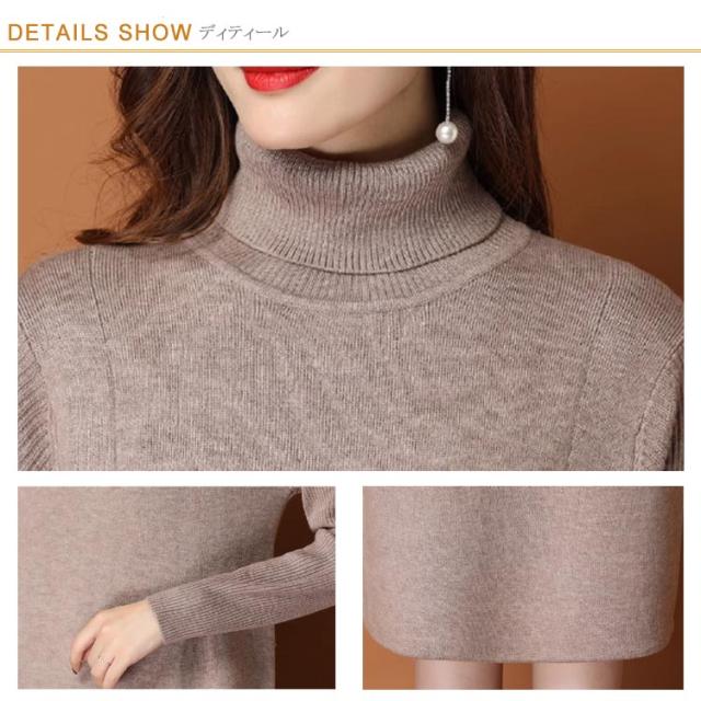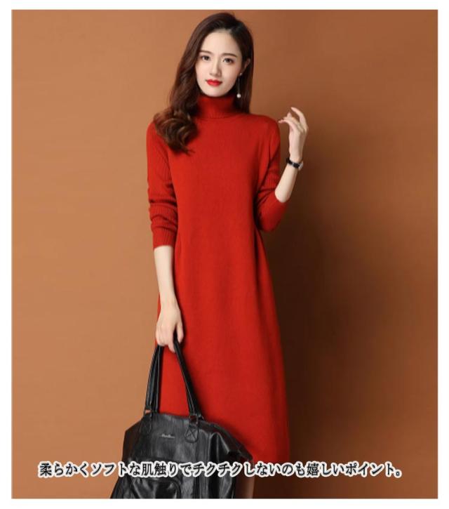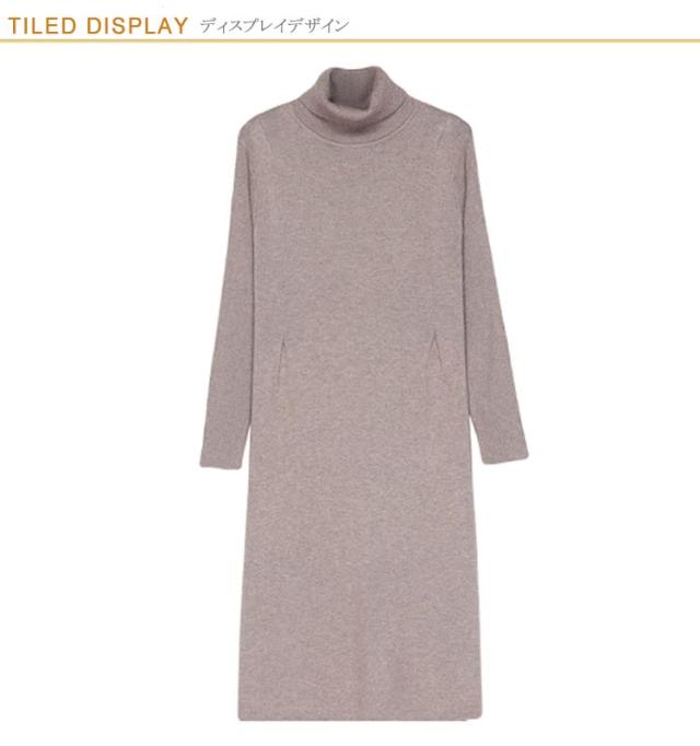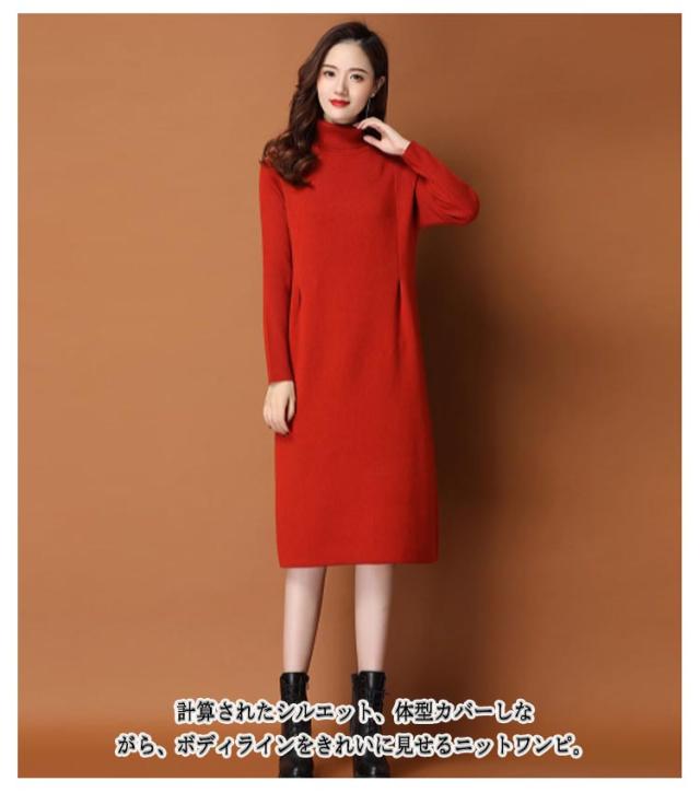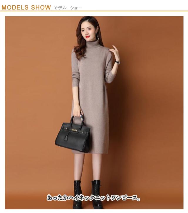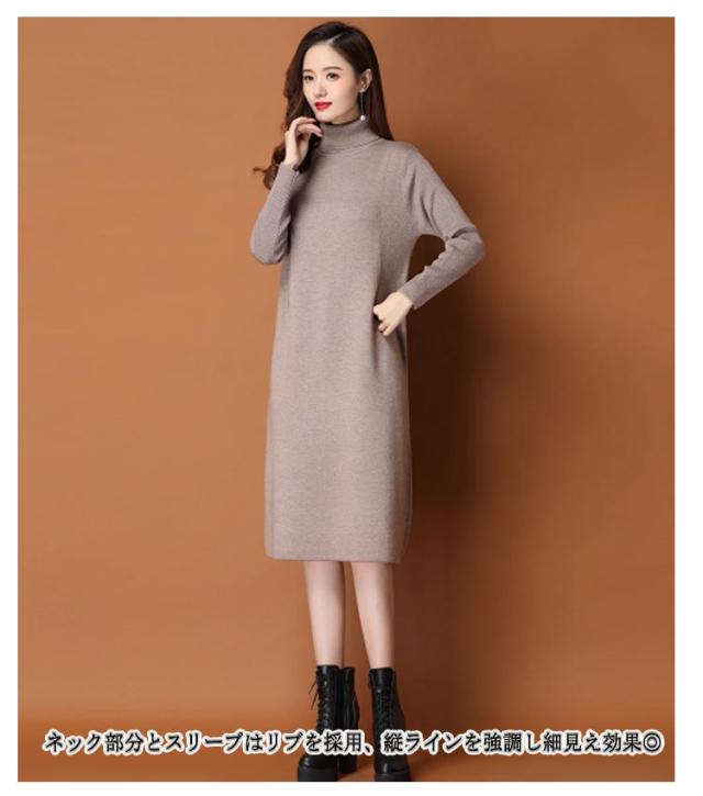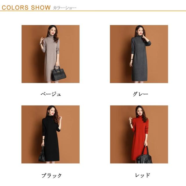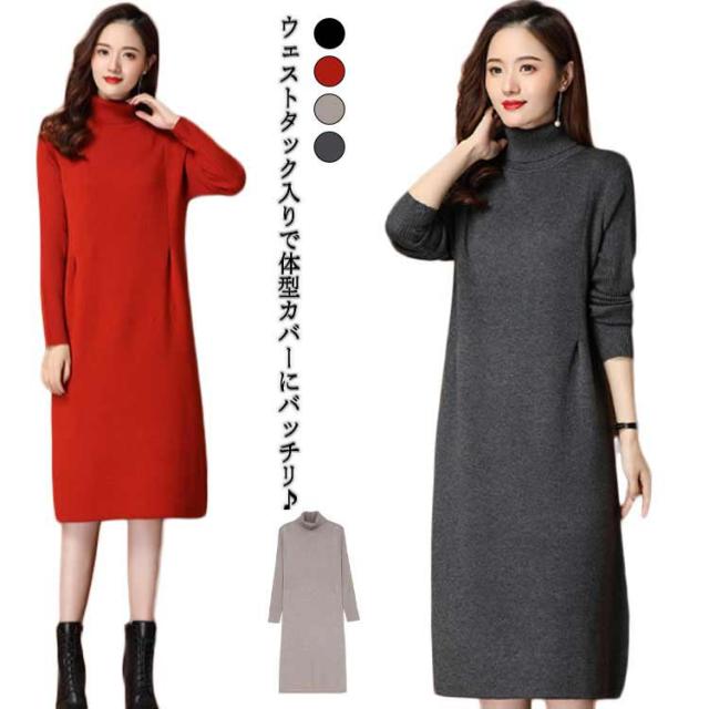 体型カバー ニットワンピ タートルネック ニットワンピース ニット ワンピース ハイネック ハイネック タック入り 長袖 ひざ丈 おしゃれ チュニック 秋冬 無地 ニット ワンピース 20代