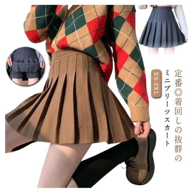 ミニ インパン レディース Aライン ショートスカート プリーツスカート フレア 学生 きれいめ 長め インナーパンツ付き スカパン 膝上丈 ウールタッチ 通学 ガーリー 大人 普段着 ミニスカート スクールスカート 自由制服 秋