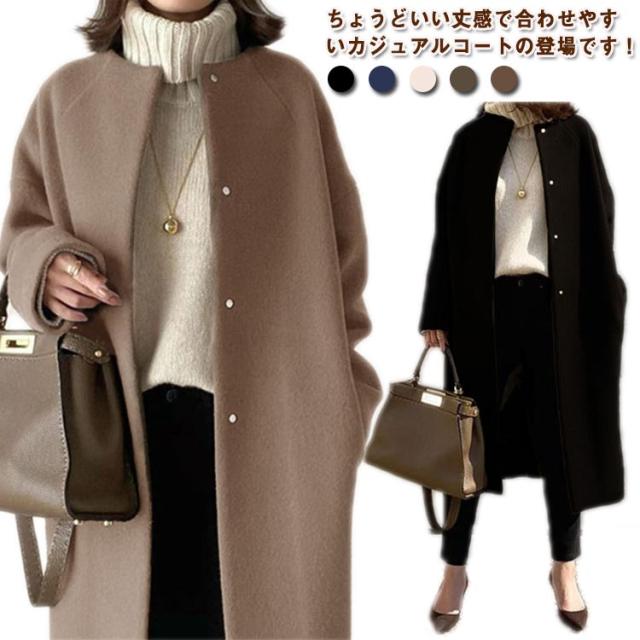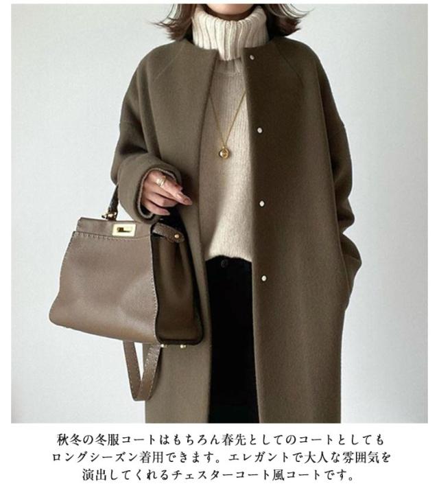 チェスターコート 冬 フードなし 秋 レディース ミドル丈 ノーカラーコート トレンチコート 羽織り コート ボタン カジュアル コート アウター ロングコート ラシャコート 羽織り 長袖 防寒 おしゃれ 体型カバー 春秋冬 きれいめ おしゃれ かわいい 大人 通勤
