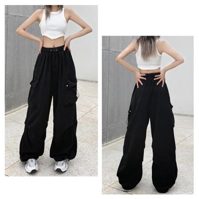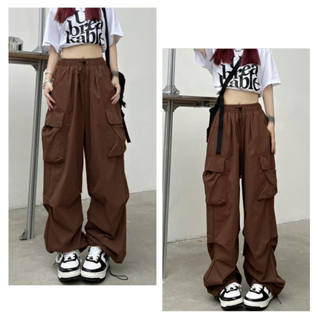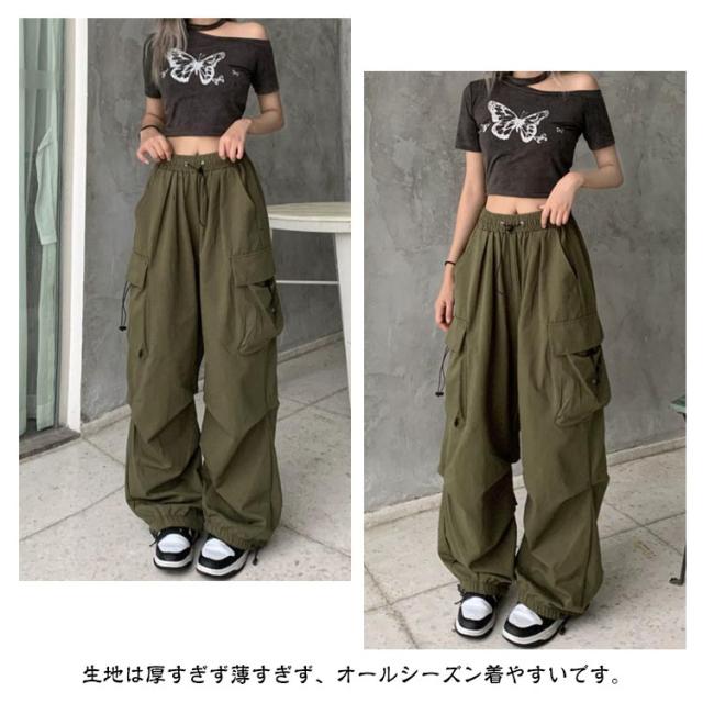 レディース ミリタリーパンツ ウエストゴム ダンスパンツ ストリート ロングパンツ カーゴ ダンス衣装 ボトムス パンツ ヒップホップ ダンス衣装 韓国ファッション ゆったり 大きいサイズ ワイドパンツ ダンス練習 カジュアル 送料無料
